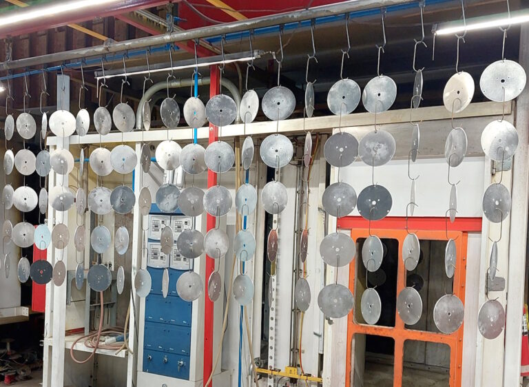 We also have a traditional powder booth and curing oven for parts that would be too large or heavy for our conveyor line.